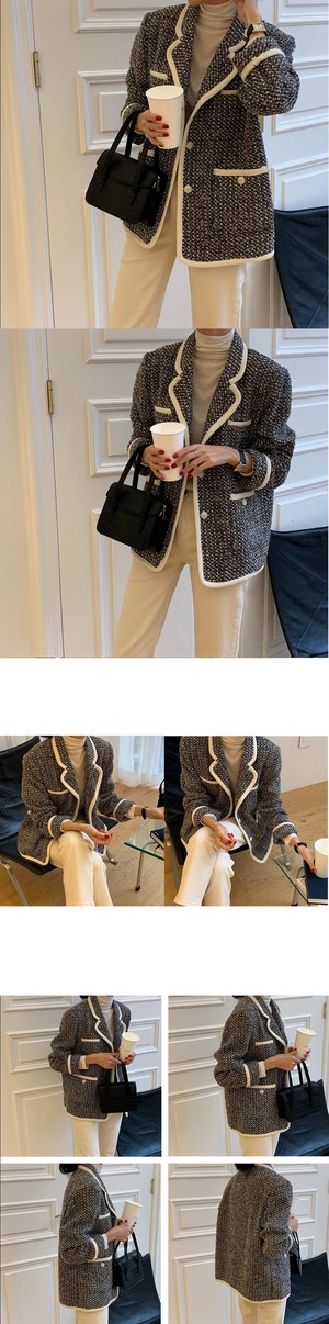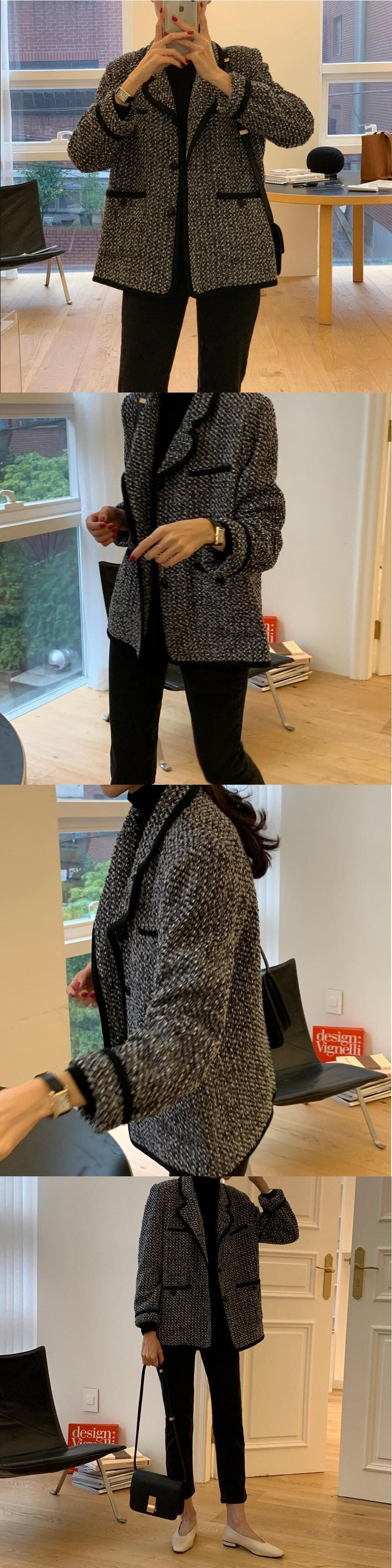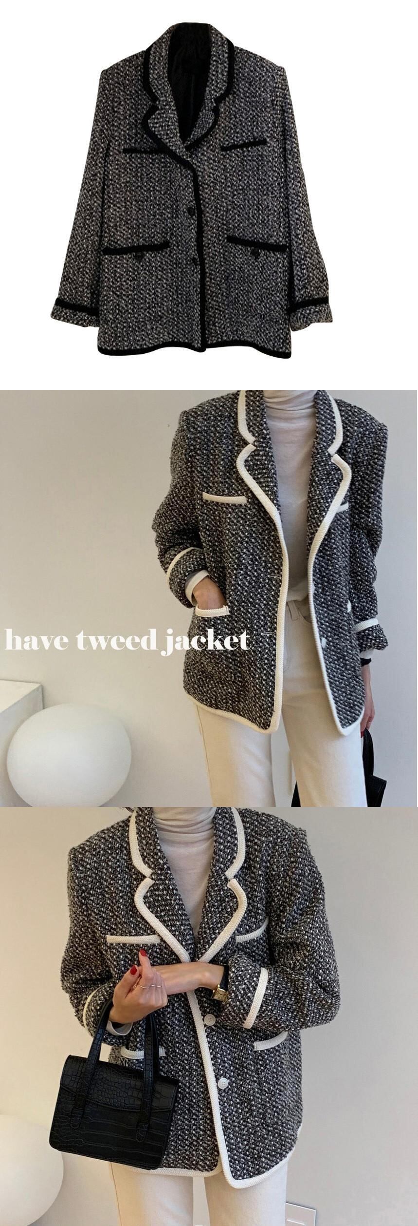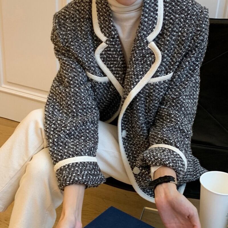 スプリングオータムスタンダードカラーツィードコート レディース レトロ 春物 秋物 韓国婦人91179316818