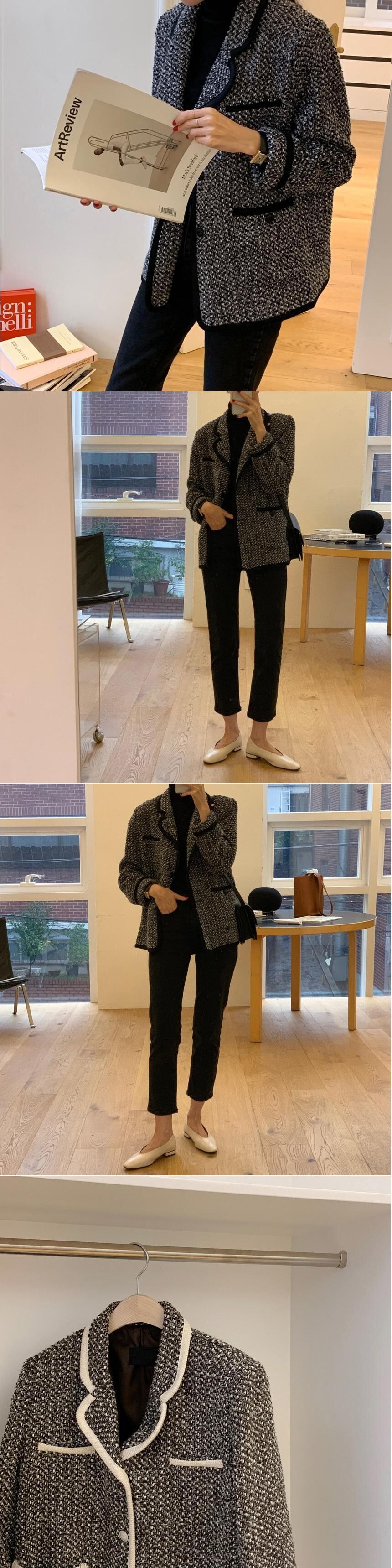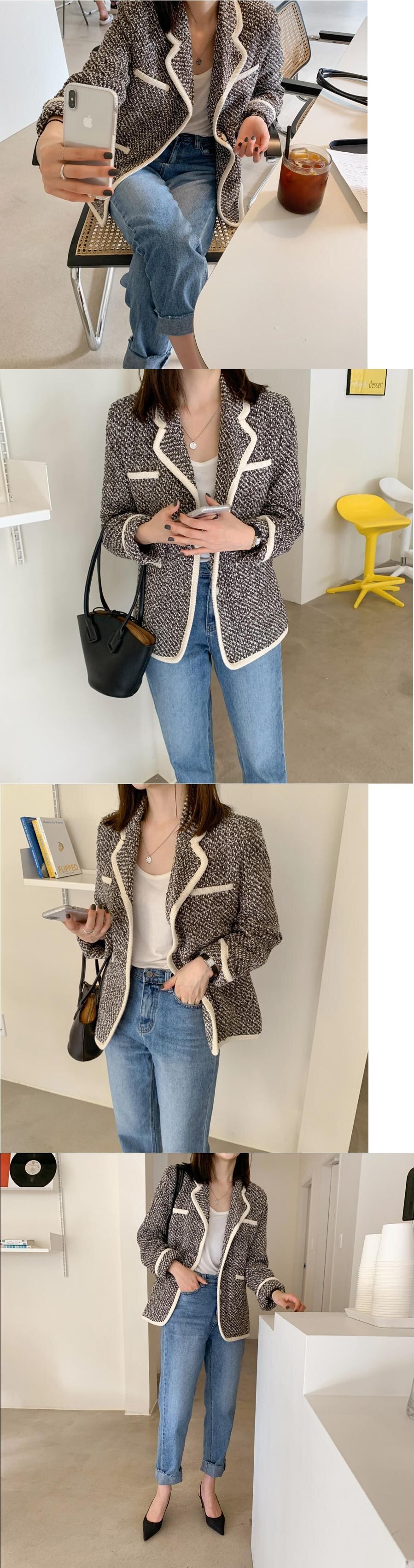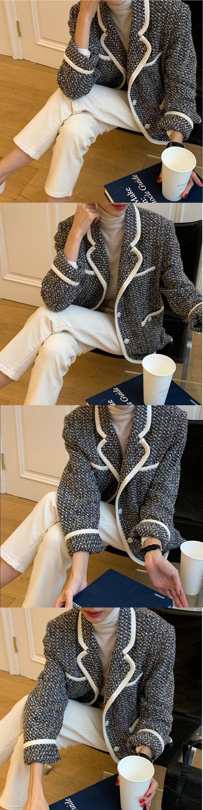 スプリングオータムスタンダードカラーツィードコート レディース レトロ 春物 秋物 韓国婦人91179316818
