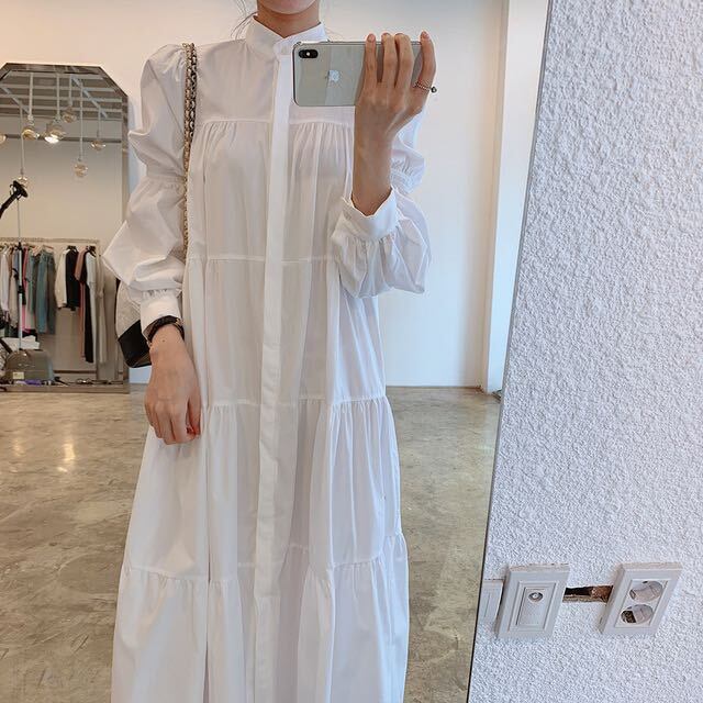 カラールーズプリーツスリーブシャツ ドレス ロングスカート 韓国婦人8245835963