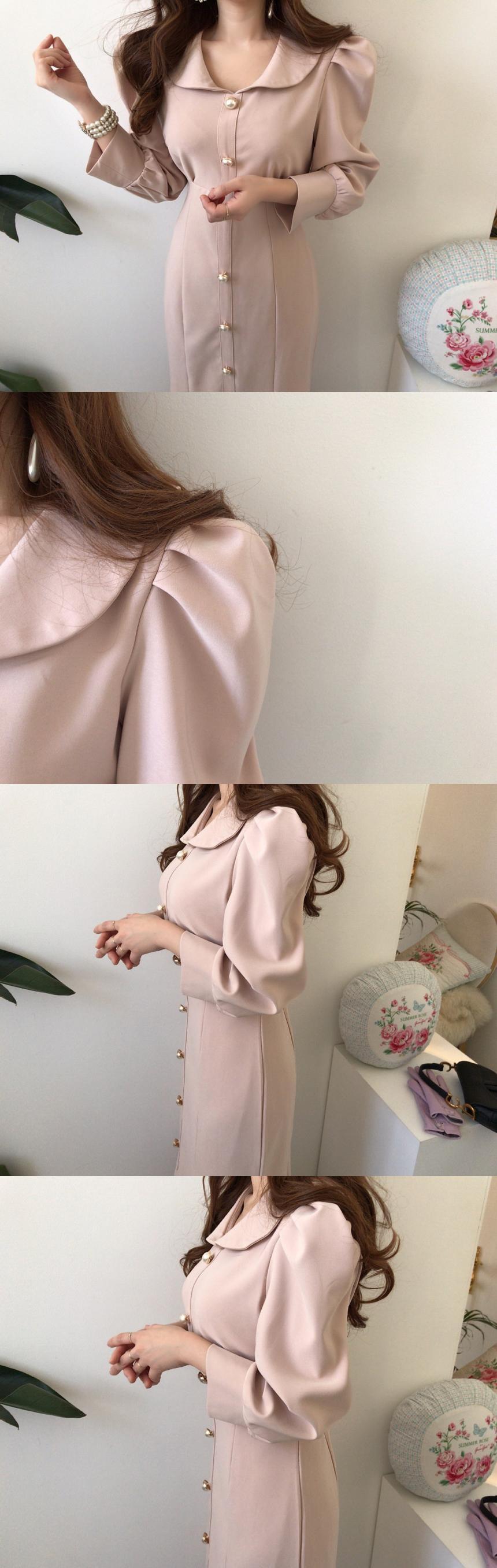 ハイウェストウェストスリーブロングドレス レディース エレガント 韓国婦人45171361802