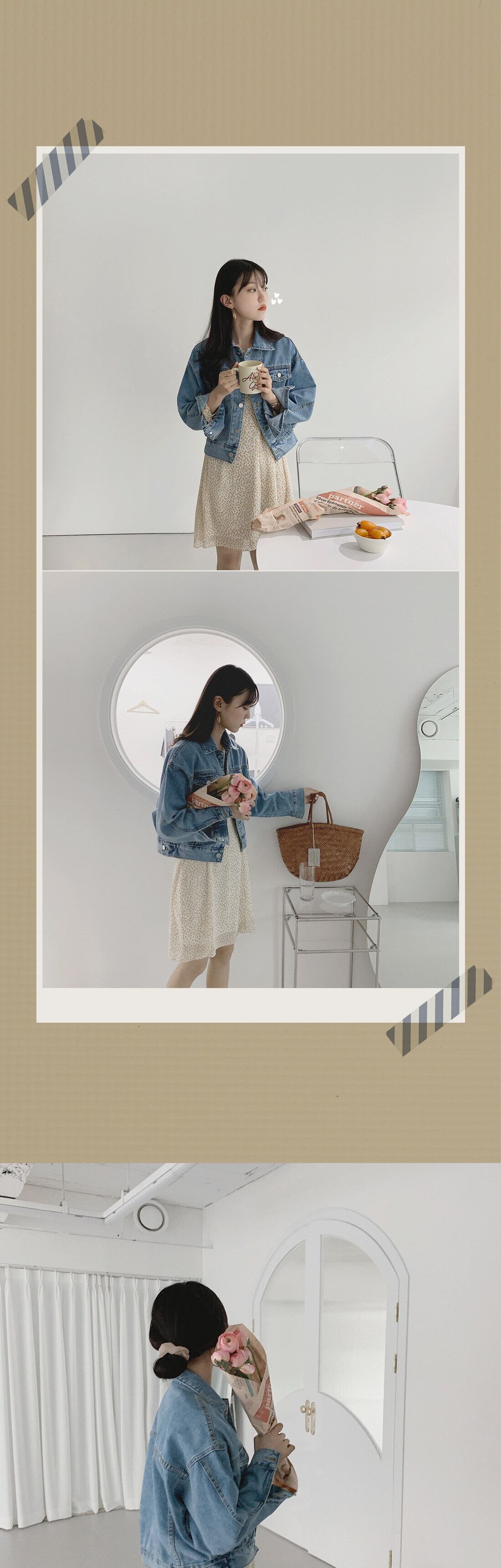 スプリングカラーウェストフローラルドレス 春物 花柄 スクウェア 韓国婦人43749232452