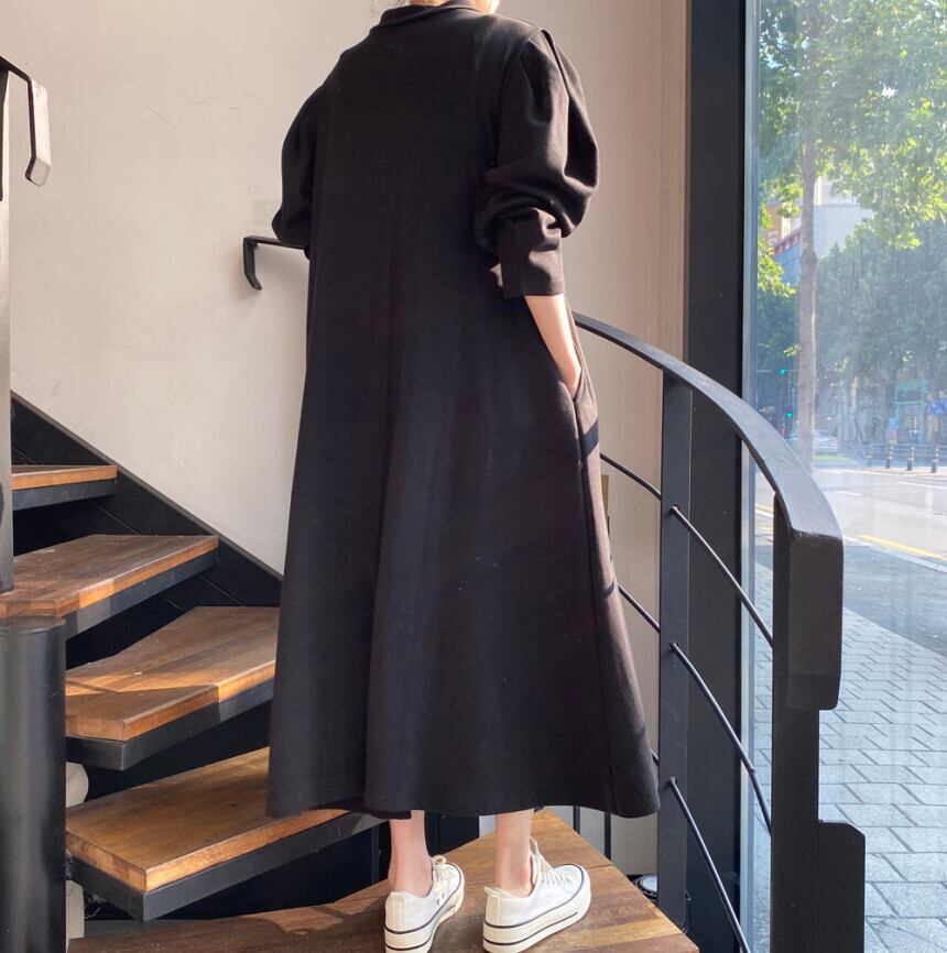 スプリングスタンダードロングスカート ルーズカラーセーター ドレス レディース レトロ 春物 韓国婦人47402226287