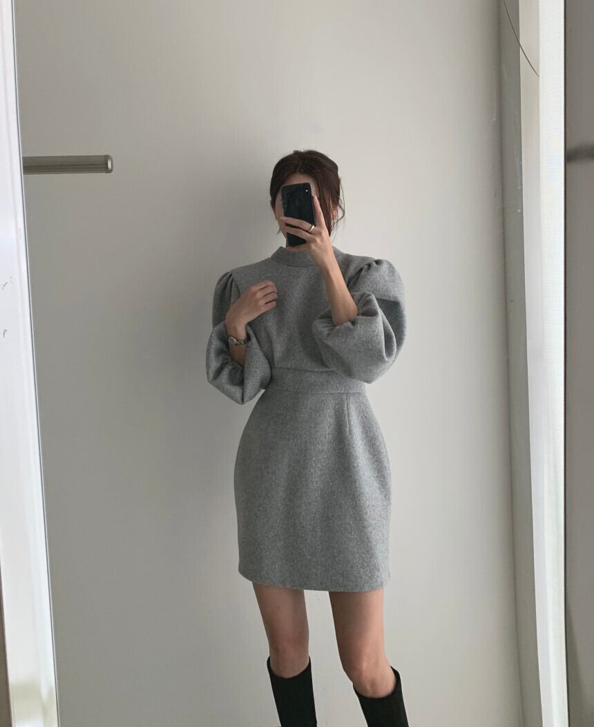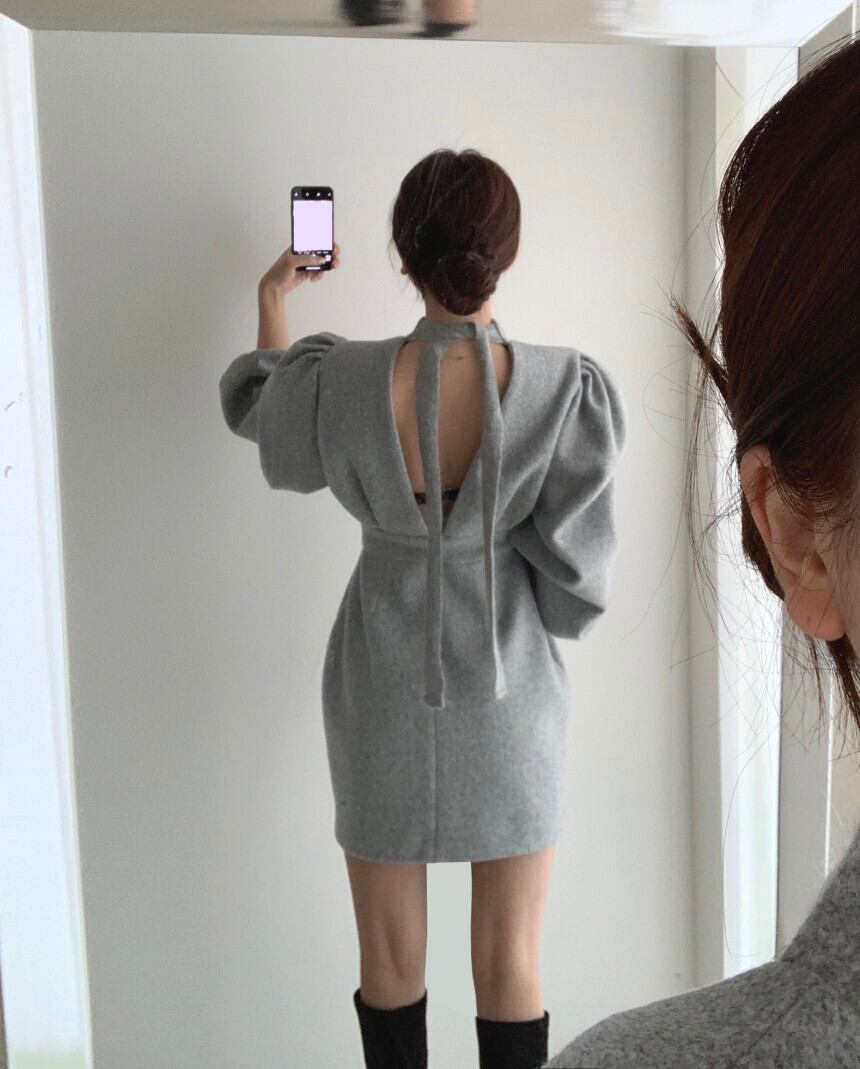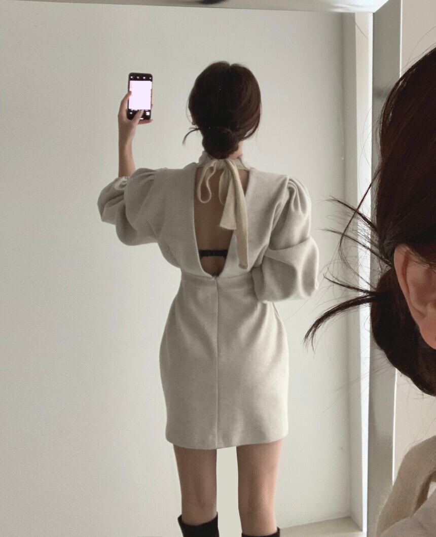 スプリングオータムスタンダードラウンドネックバックスリムセーター レッドドレス ロング レトロ 春物 秋物 Oネック 韓国婦人16370628647
