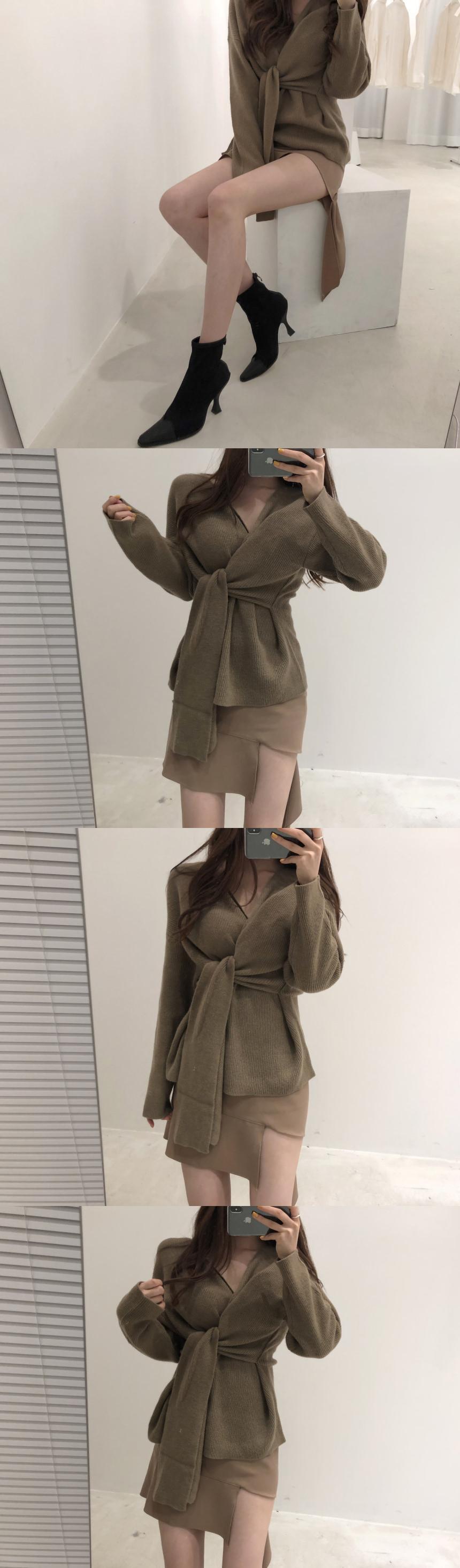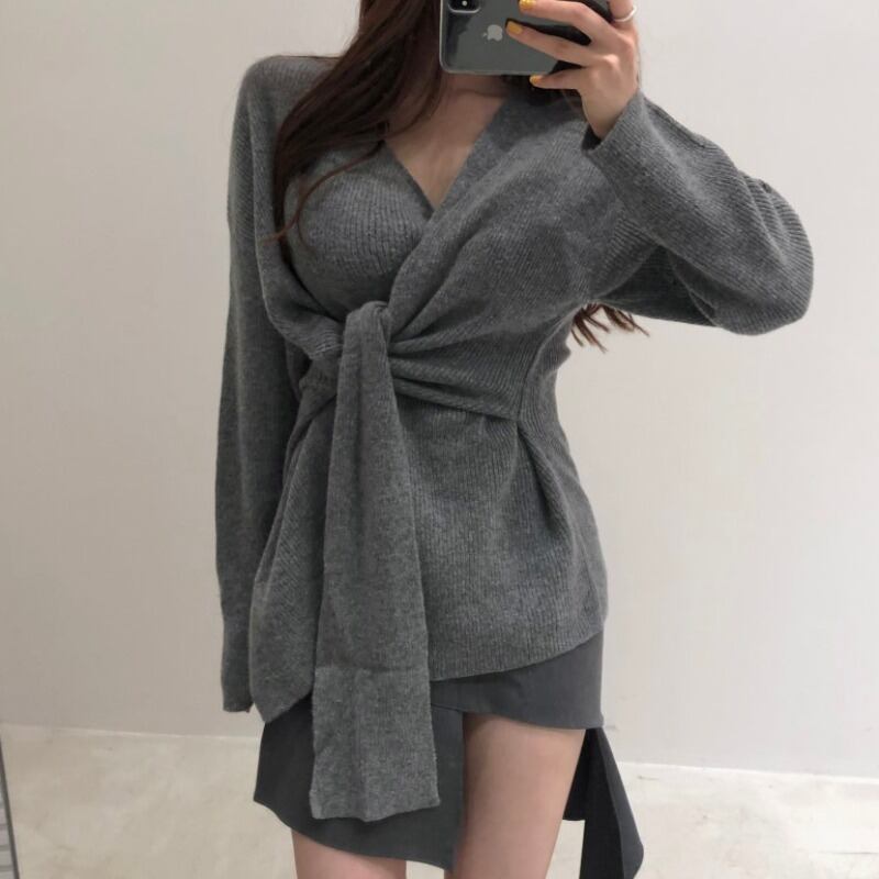 オータムスタイルスタンダードVネックハイウェストウェストニットセーター カーディガンレディース レトロ エレガント 秋物 韓国婦人50267145069