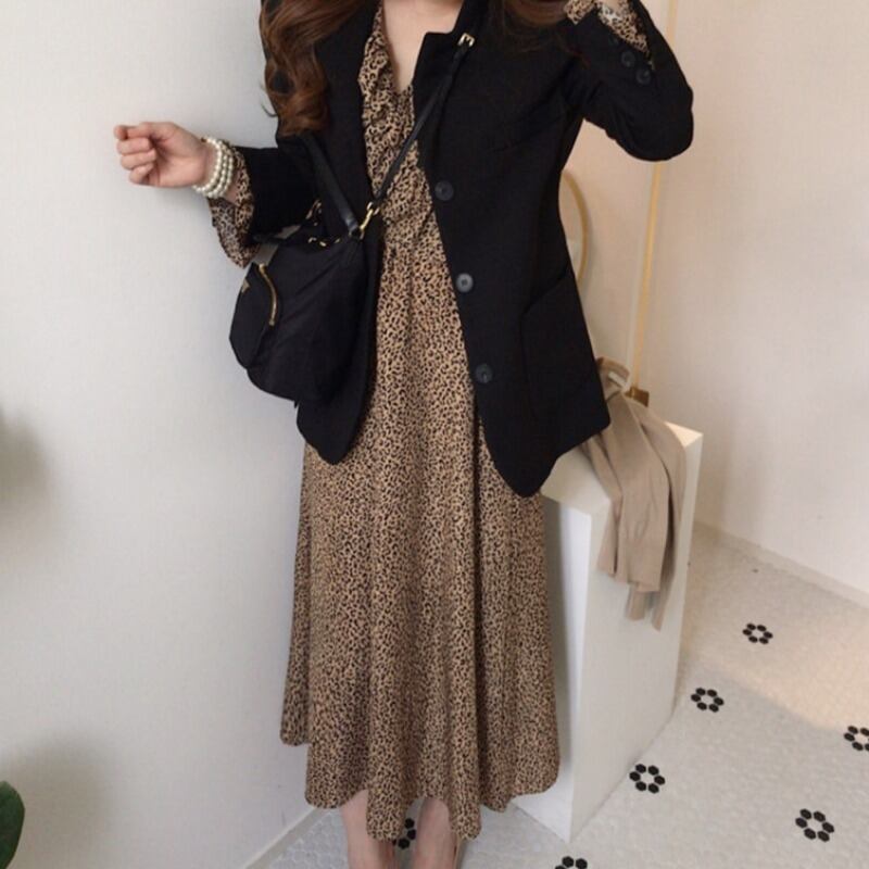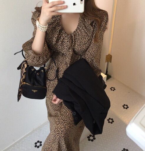 レオパードロングスカート Vネック 韓国婦人99136988585