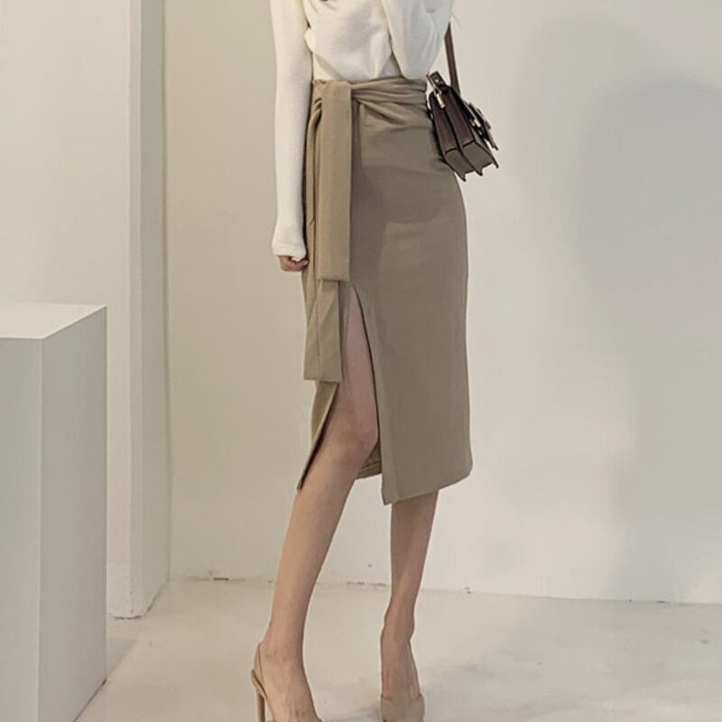 スカート サマーAラインロングハイウェストスリット 夏物 韓国婦人12055143795