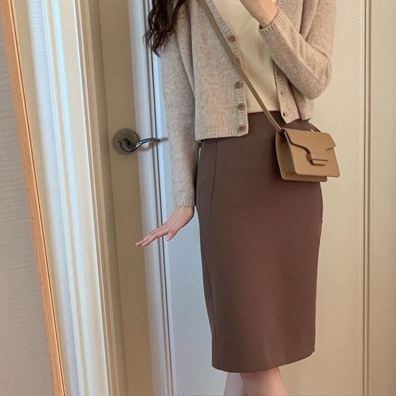 スプリングオータムブルーショートニットカーディガンハイウェストウェストスカート 春物 秋物 韓国婦人21733276845