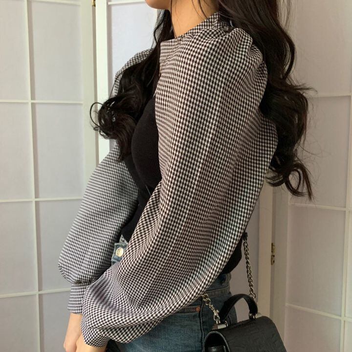 スプリング格子柄シャツ ニット ストリート 春物 韓国婦人20315889901