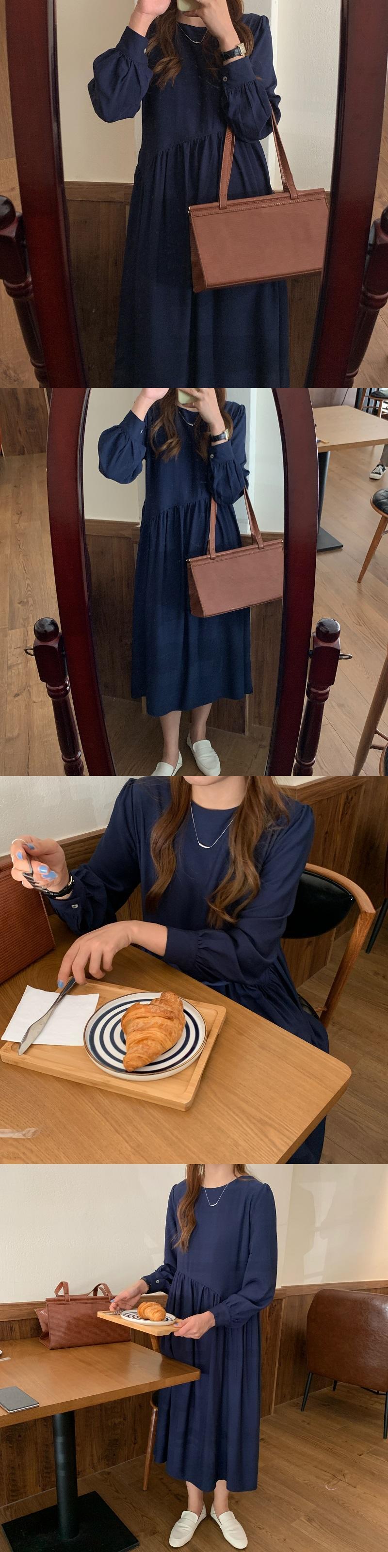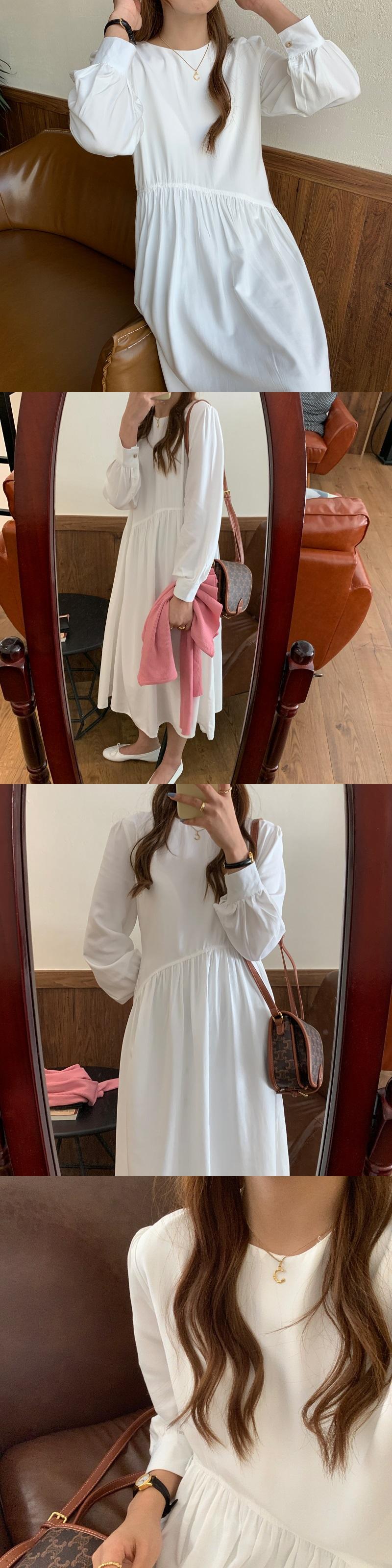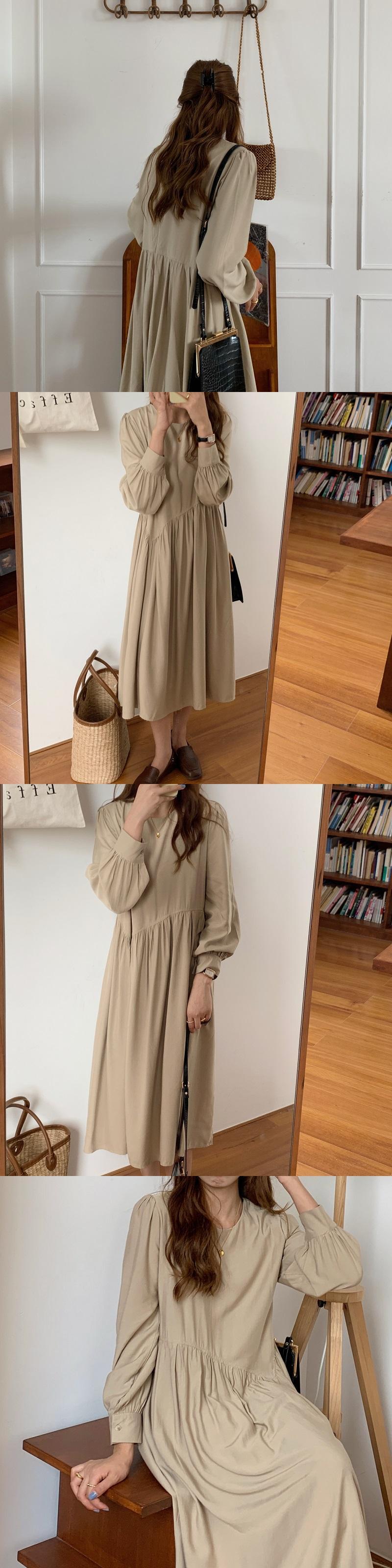 スプリングドレス ラウンドネックルーズプリーツロングスカート スリム 春物 Oネック ステッチ 韓国婦人36775640315