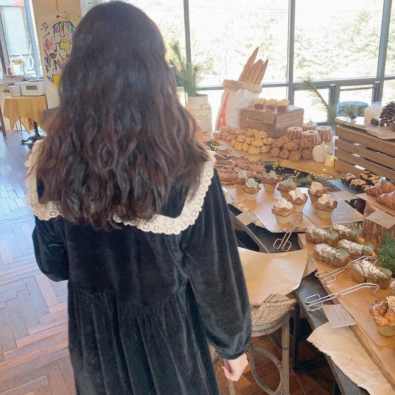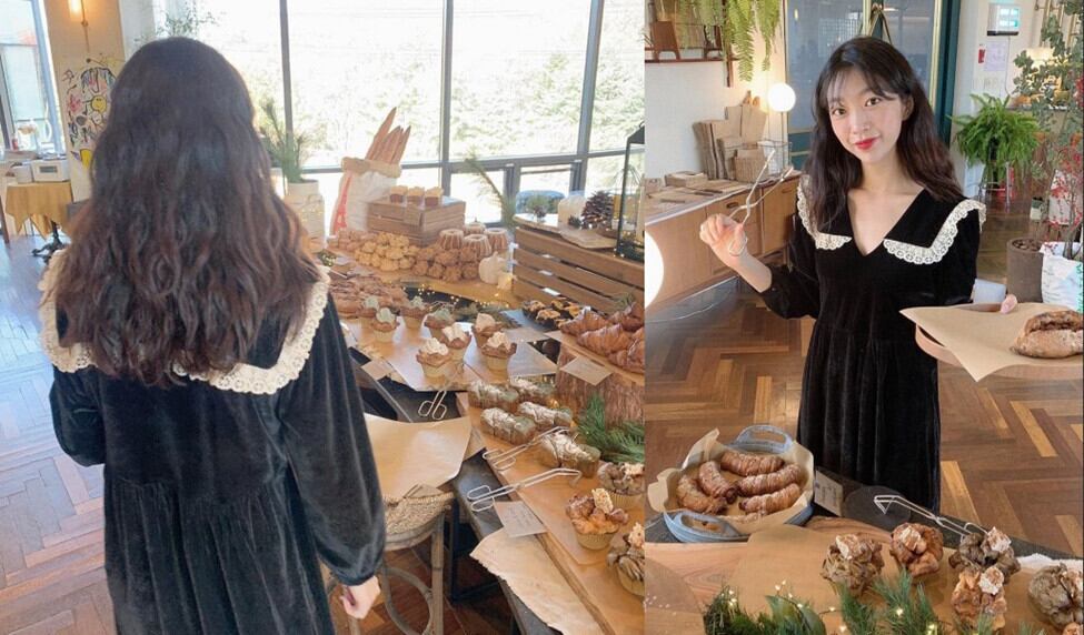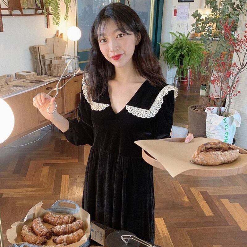 スタイルブラックドレス カラーベルベットスカート スプリング 春物 韓国婦人94293478738