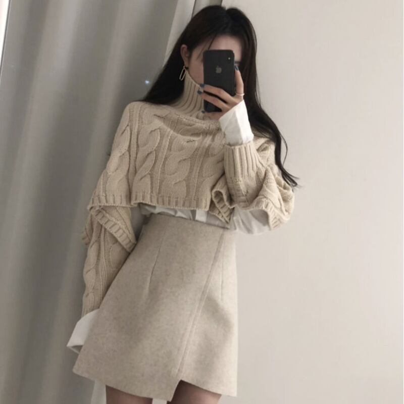 オータムショートプルオーバー ハイウェストスカート 秋物 韓国婦人97756964988