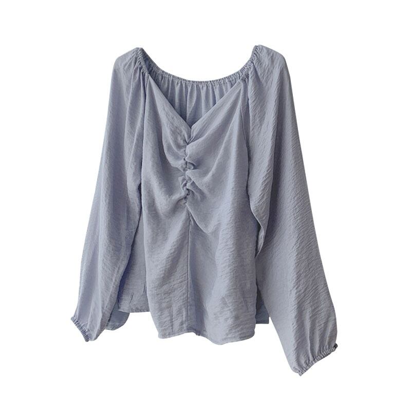 トップス レディースVネック薄手シャツ ロング オフショルダー 韓国婦人56176945428