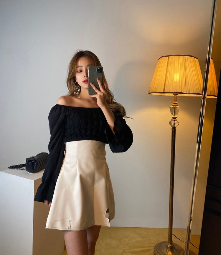 色:アプリコットトップ,ブラックトップ,ホワイトスカートSサイズ,白いスカートMサイズ,ブラックスカートSサイズ,黒スカートM