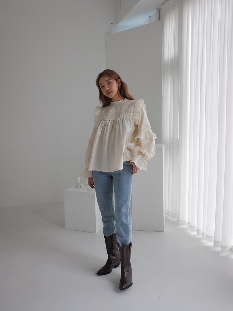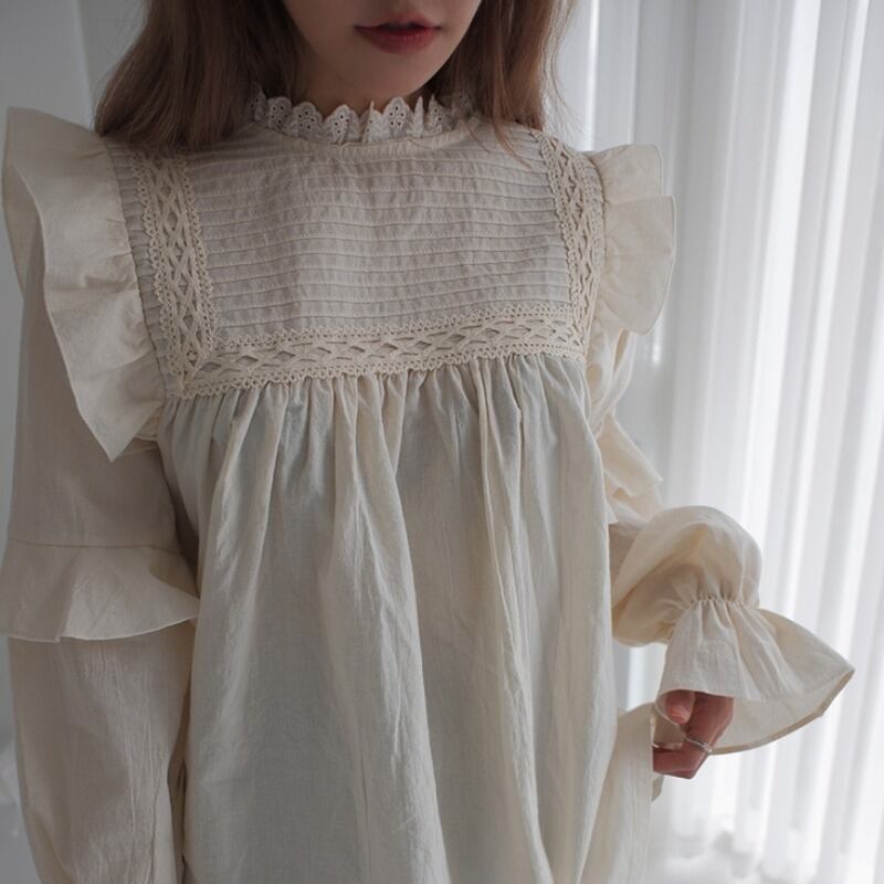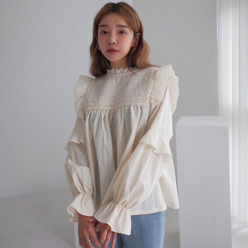 オータムスタイルスリーブシャツ ホワイト ランタンスリーブ 秋物 韓国婦人99453275143