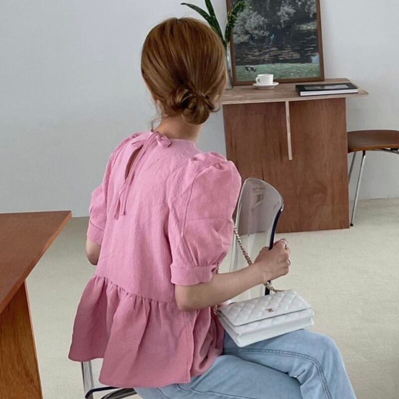 バックストラップ ルーズシャツ サマー 大人ガーリー スウィート キュート カジュアル 夏物 韓国婦人12349633780
