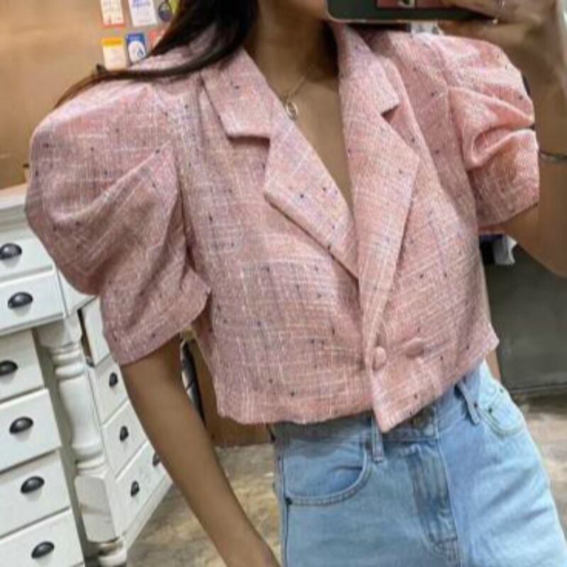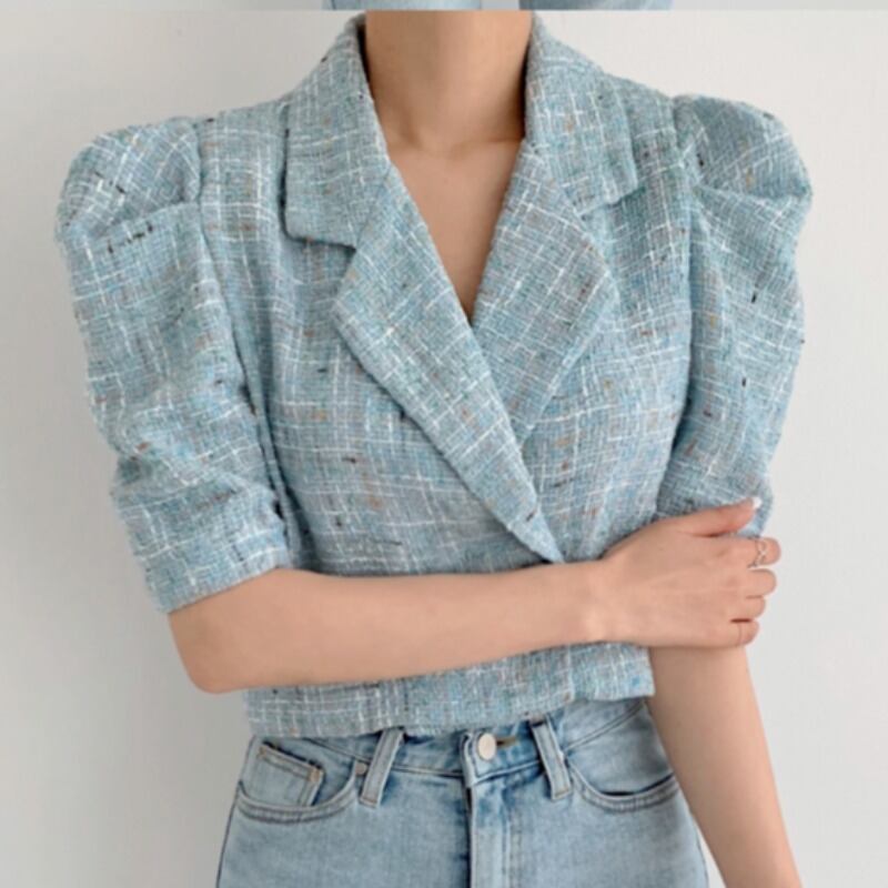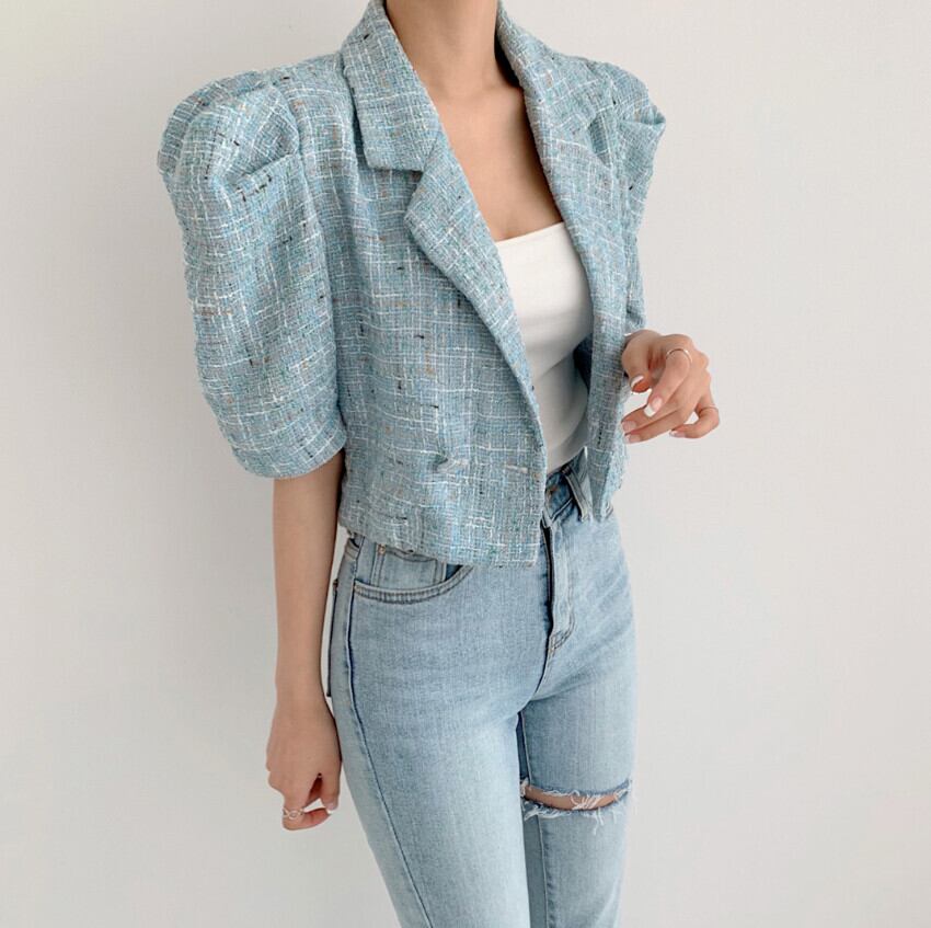 サマーカラーカジュアルスリーブツィードショートコート ジャケット レディース 夏物 韓国婦人56207459072