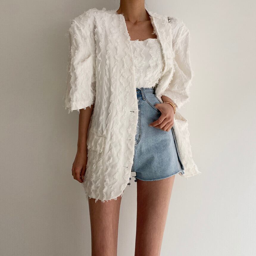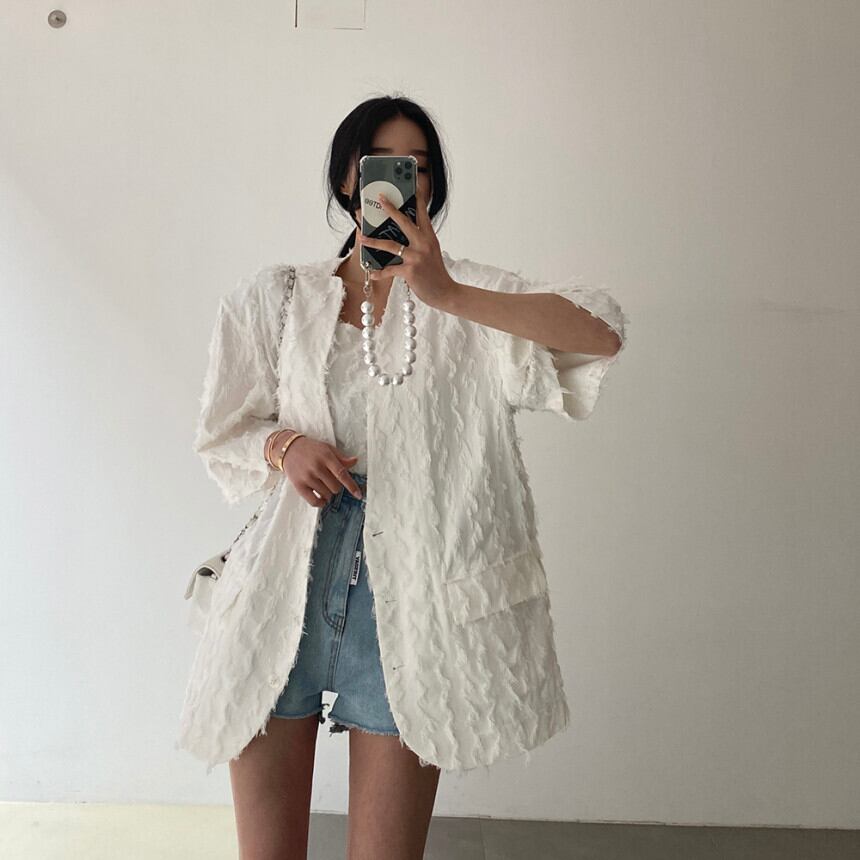 スタイルサマーVネックルーズカジュアルカーディガンジャケット レディース 夏物 ステッチ 韓国婦人29975130995