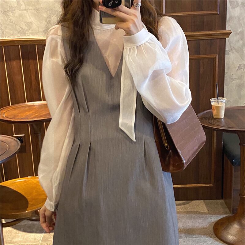 スタイルシャツ Vネックスカート オータム ロング 秋物 韓国婦人86837700188