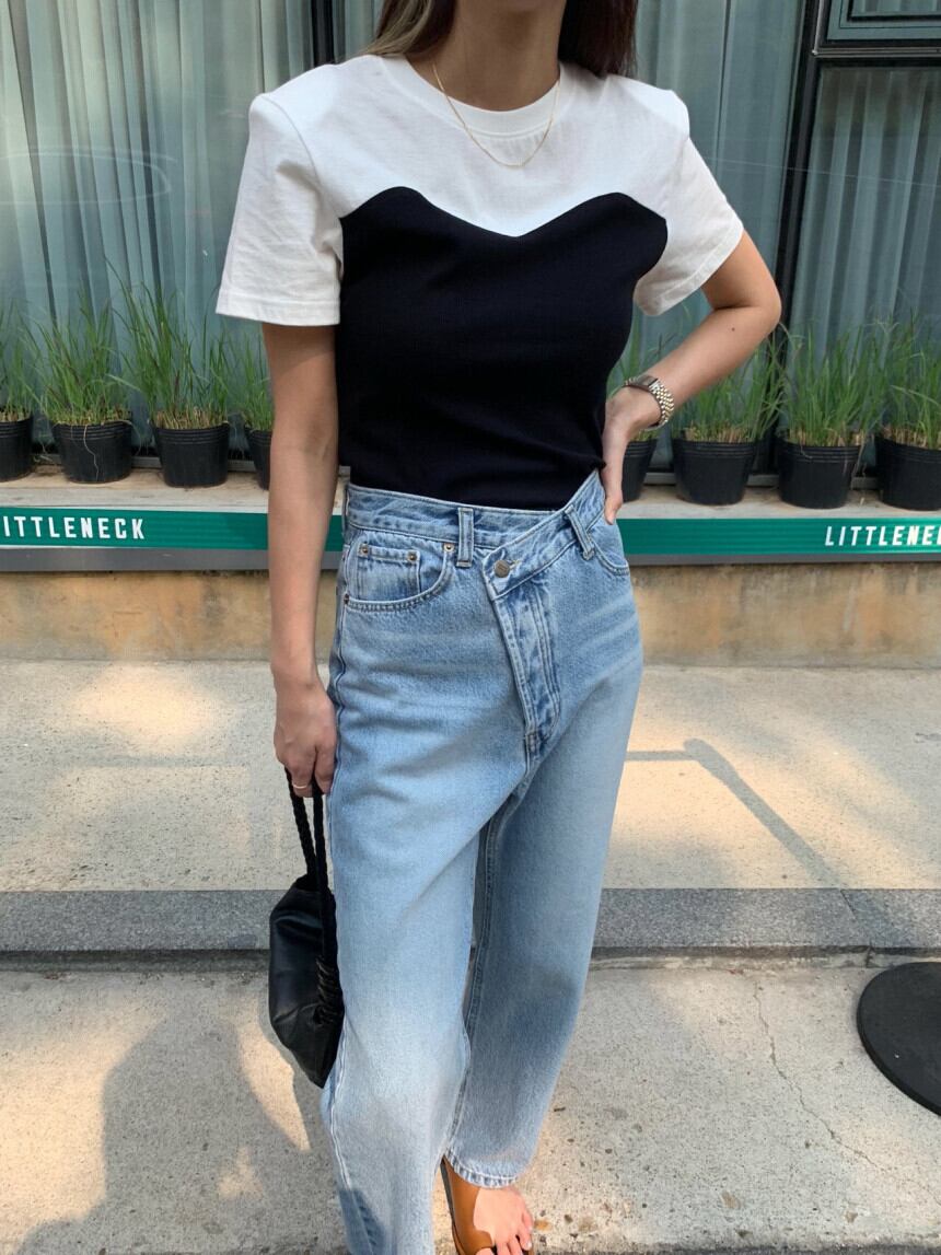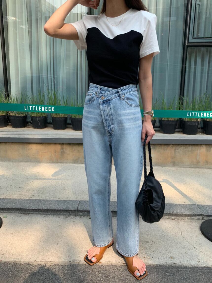 サマーカラースタイルラウンドネック薄手Tシャツ トップス レディース 夏物 Oネック ステッチ 韓国婦人91712744723