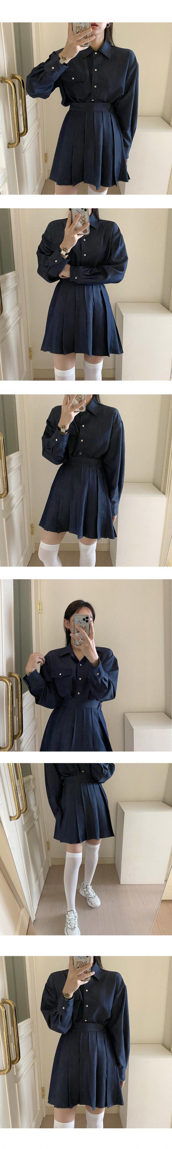 スプリングスタイルシャツ ハイウェストウェストプリーツスカート ショート 春物 韓国婦人21647296090