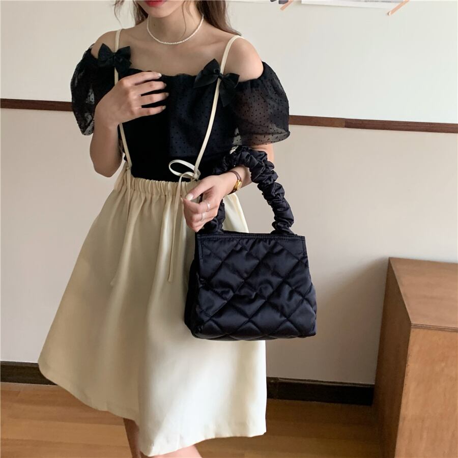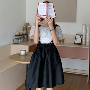 サマー水玉シフォントップス リボンウェストスカート 大人ガーリー スウィート キュート カジュアル 夏物 韓国婦人52811899442