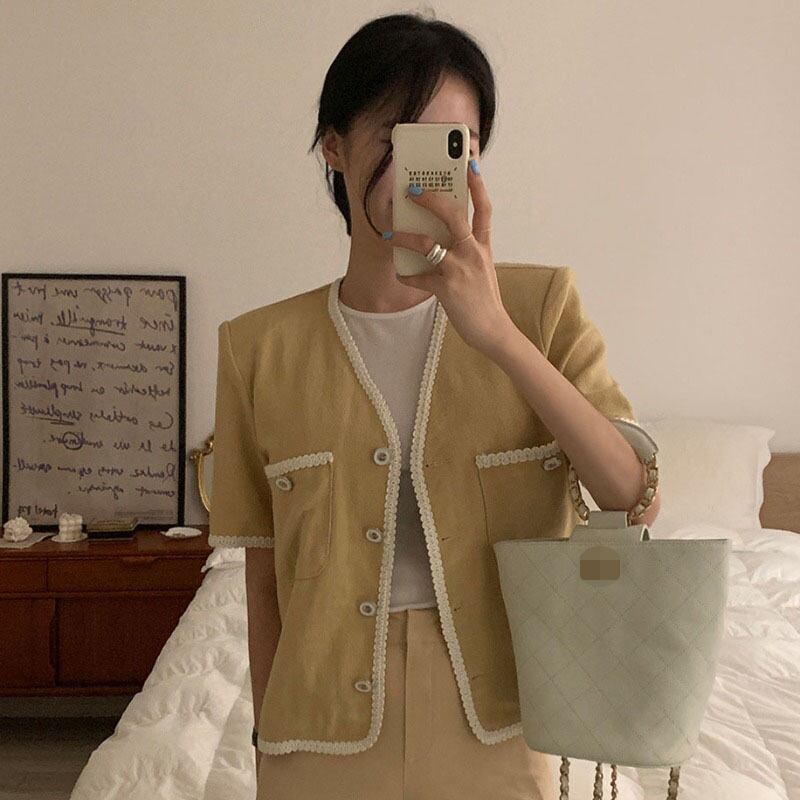 サマーレースVネックポケットカーディガンジャケット レディース 夏物 ステッチ 韓国婦人3425358218