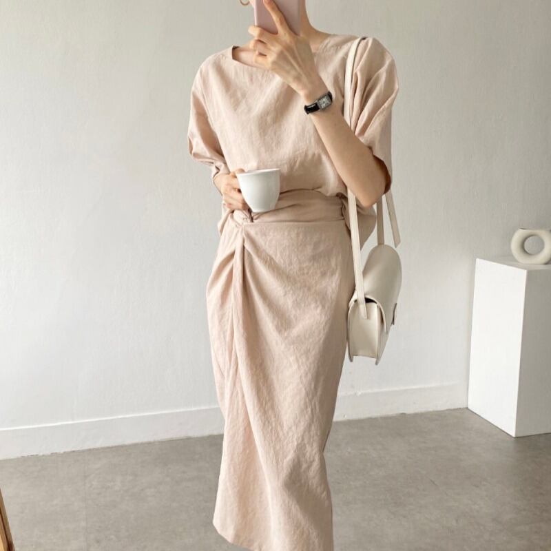 色:ネイビーブルーのスカート,ミストブルースカート,アプリコットスカート,ネイビーブルーのトップ,フォグブルートップ,アプリコットトップ