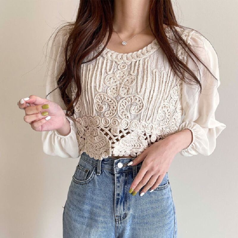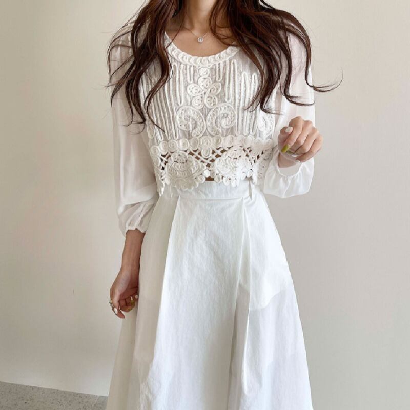 サマーレースシフォンシャツ ハイウェストスカート ロング 夏物 韓国婦人78058965359