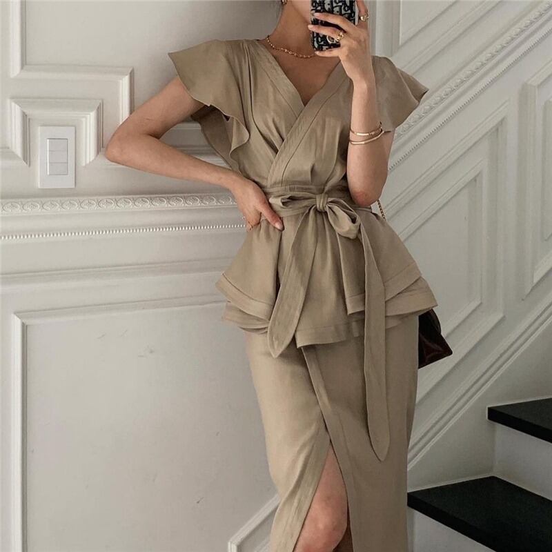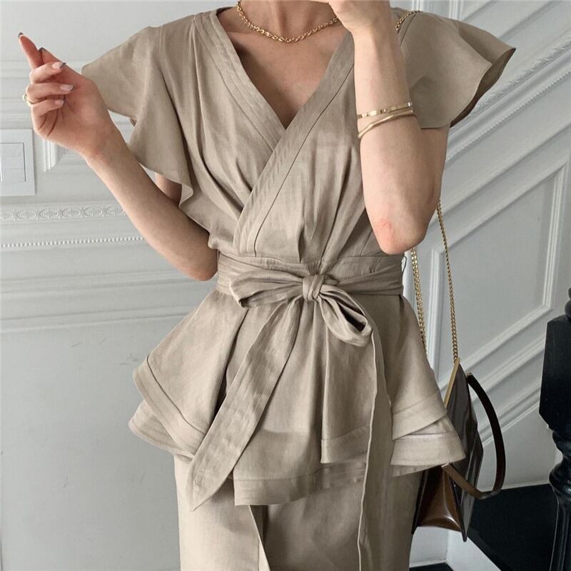 サマースタイルVネックトップス スカート レディース 夏物 韓国婦人79295298355