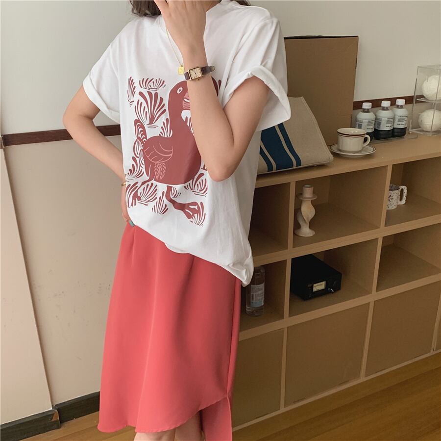 スタイルラウンドネックルーズプリントTシャツ スカート サマー 大人ガーリー スウィート キュート カジュアル 夏物 Oネック 韓国婦人21106499601