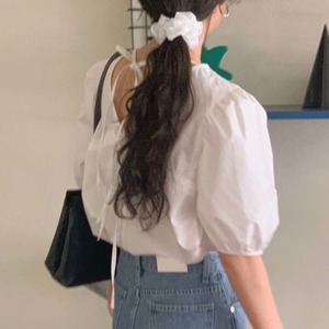 シャツ Vネックルーズスリーブトップス サマー 大人ガーリー スウィート キュート カジュアル 夏物 韓国婦人43329283532