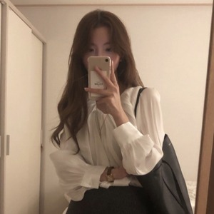 ラウンドネックプリーツブラウス シャツ スプリングサマー ロング 春物 夏物 Oネック 韓国婦人14587329305