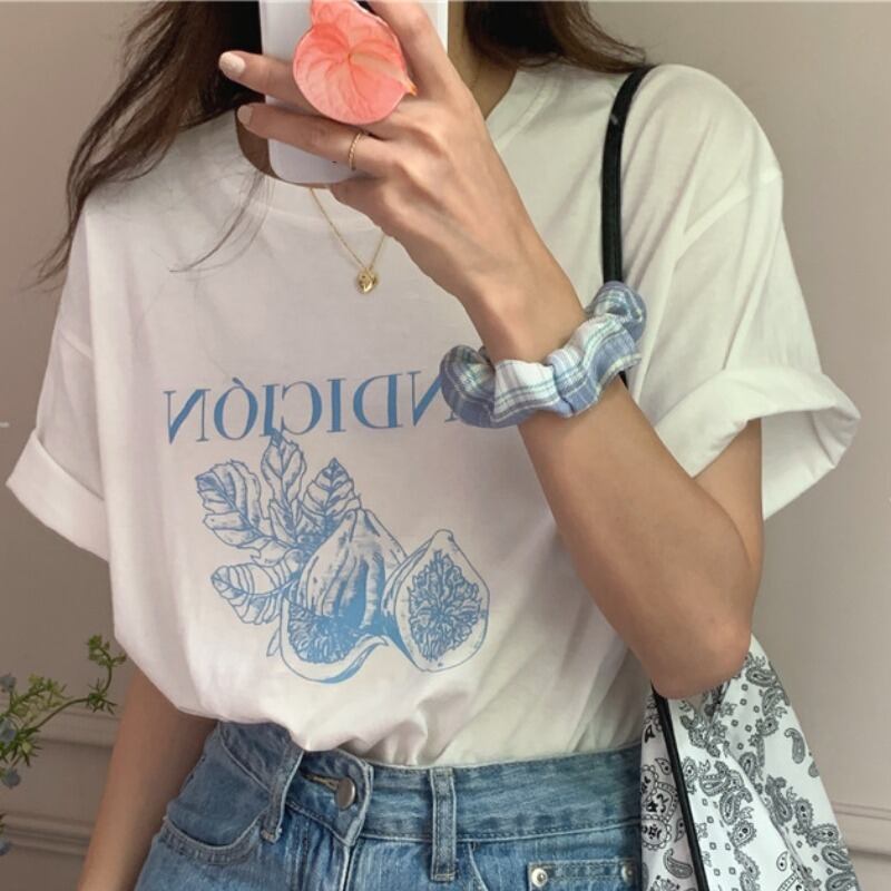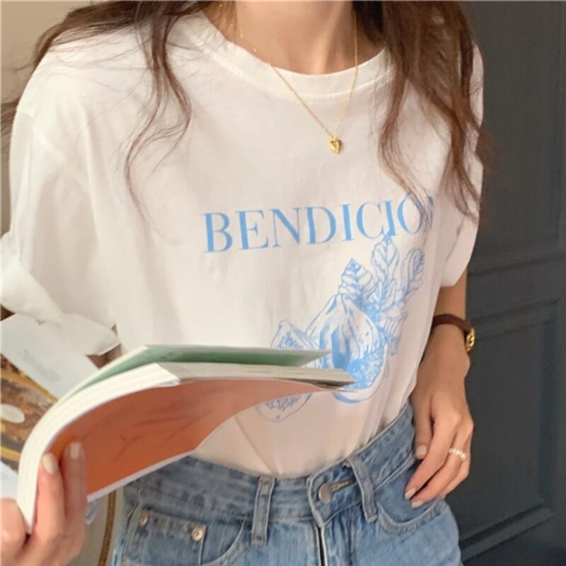 Tシャツ プリントカジュアルラウンドネックルーズトップス レディースサマー 夏物 Oネック 韓国婦人89042788181