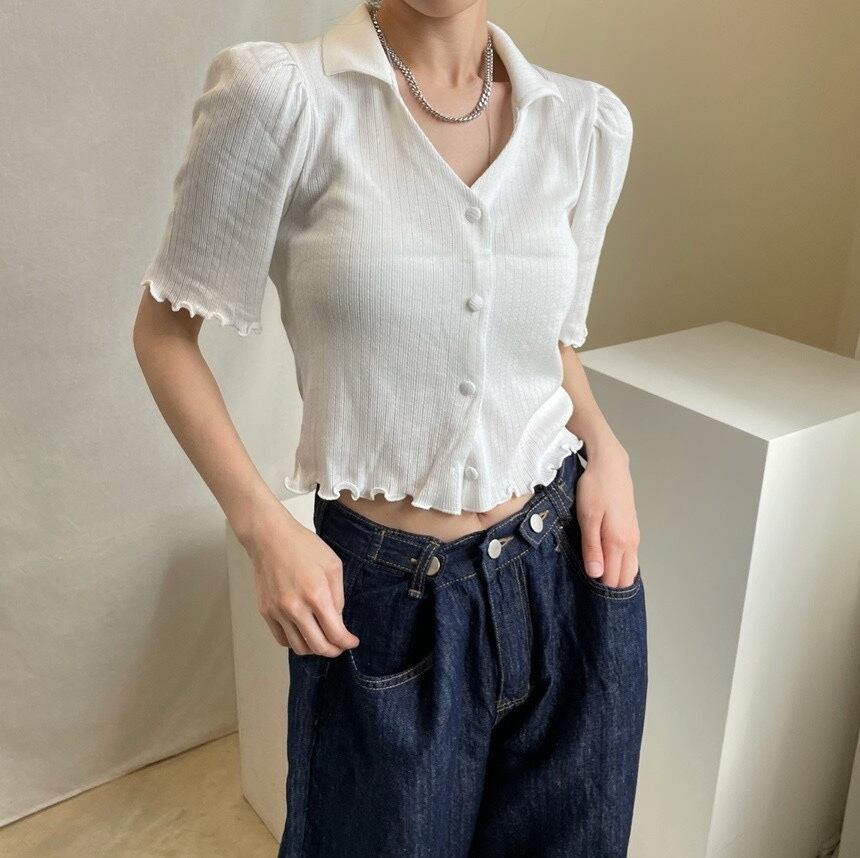 シャツ スリムボタンVネックTシャツ サマー 大人ガーリー スウィート キュート カジュアル 夏物 韓国婦人16921929589