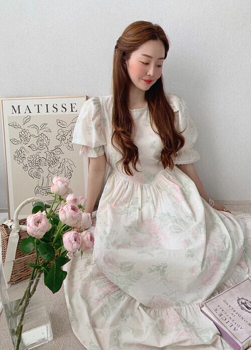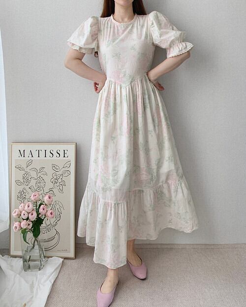 レースルーズプリント柄ドレス サマー 夏物 ピュア 韓国婦人3673971930