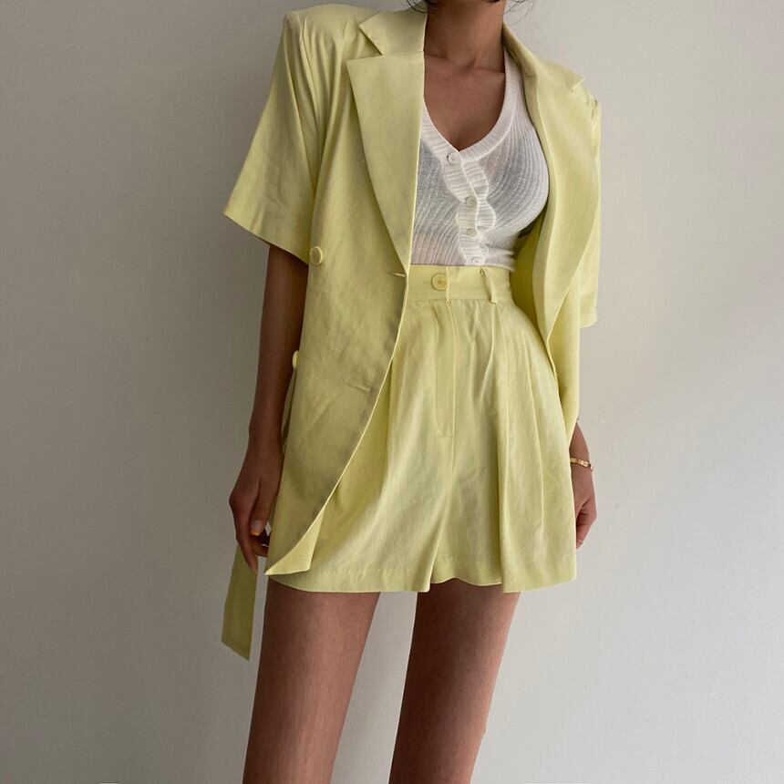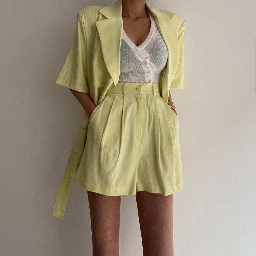 レッドカジュアルルーズジャケット ハイウェストウェストショーツ サマー 夏物 ブルマー 韓国婦人51543865070