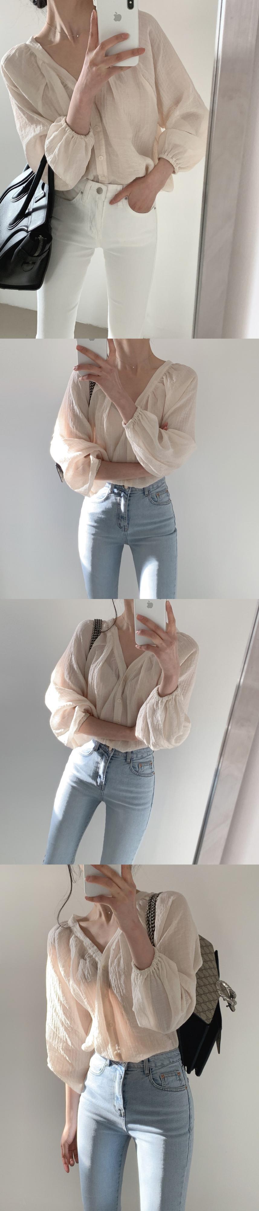 ブラウス スタイルサマーVネックスリーブルーズシャツ 夏物 韓国婦人87338508470