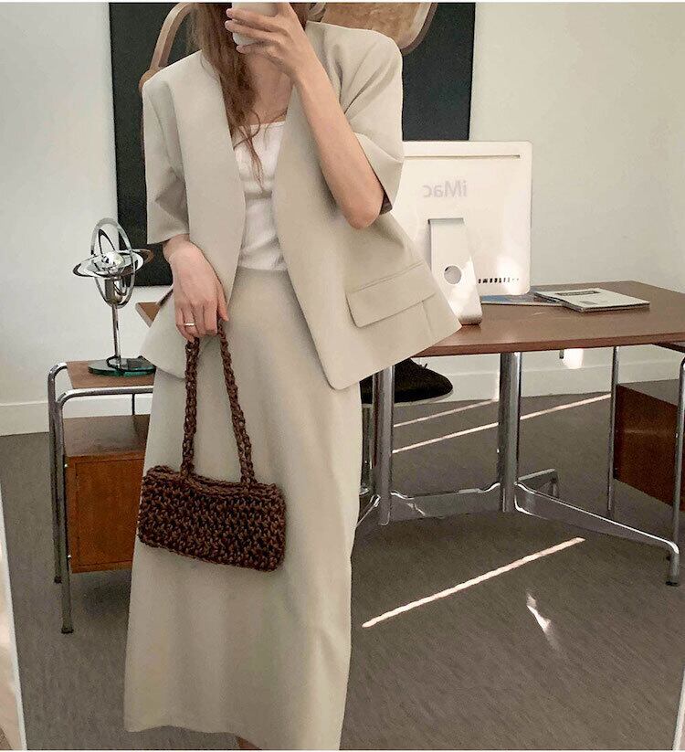 Vネックジャケット スカート カジュアルサマー 夏物 韓国婦人42426600786