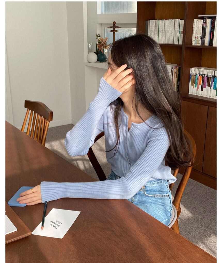 ニットセーター スプリングスリムブレストVネックショートカーディガンジャケット レディース ロング 春物 韓国婦人46617855186