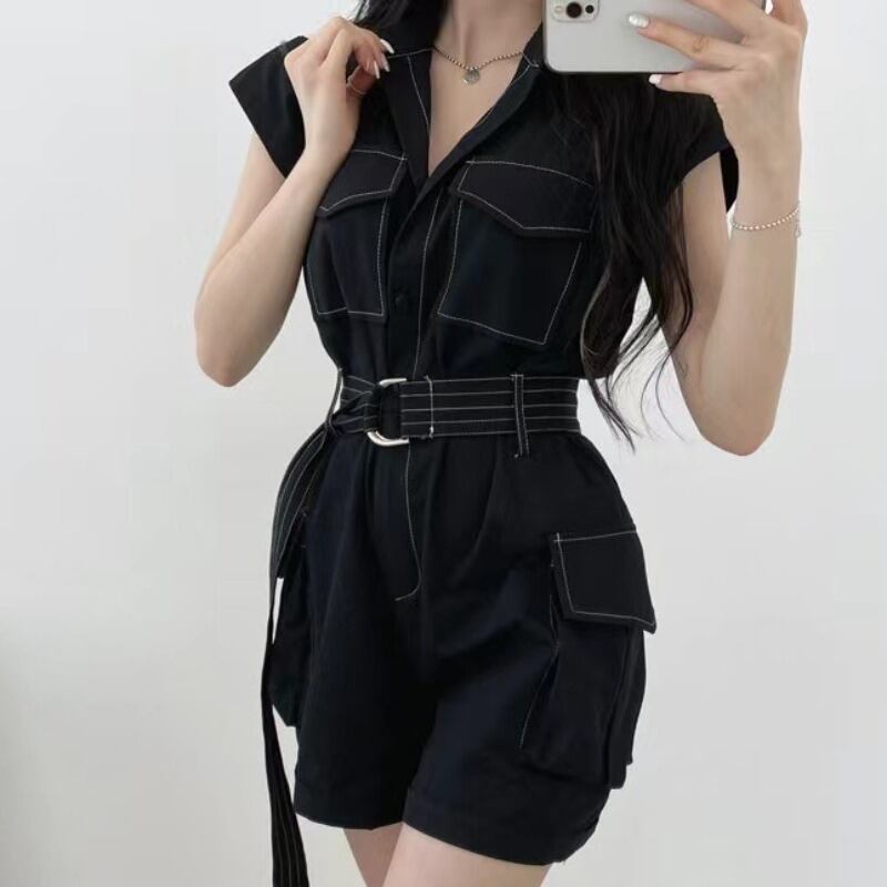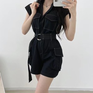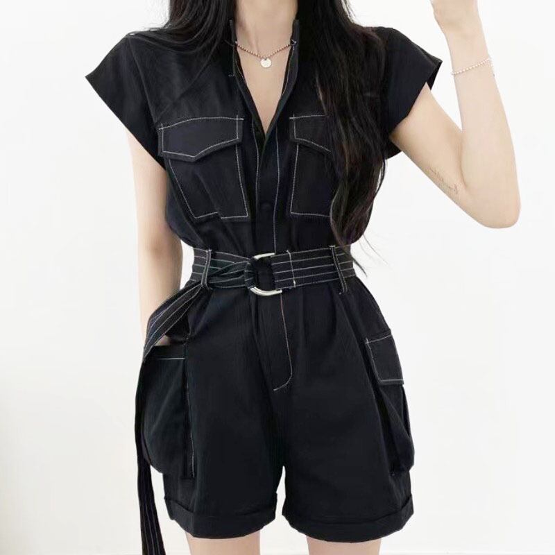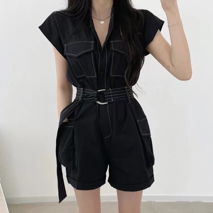 ウェストジャンプスーツ オールインワン レディースサマースタンダードカラーパンツ ショーツ レトロ レース 夏物 ブルマー レースアップ 韓国婦人99236662189