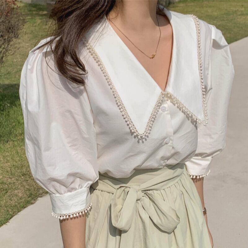 レーススリーブシャツ ルーズブラウス サマー 夏物 ステッチ 韓国婦人59198251691