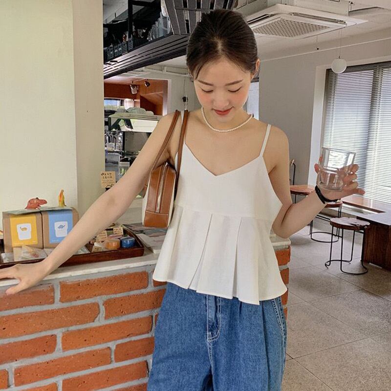 サマースタイルプリーツノースリーブルーズVネック 大人ガーリー スウィート キュート カジュアル 夏物 韓国婦人72286904745