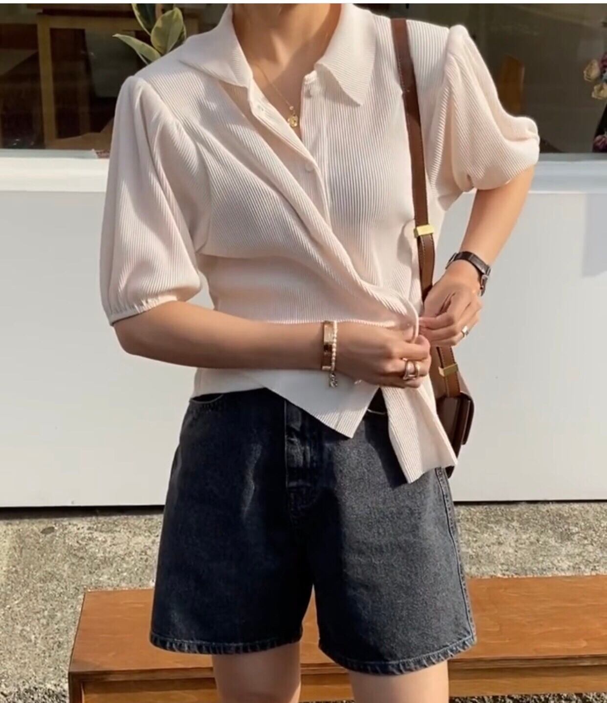 ストライプシャツ サマー薄手スリーブトップス 夏物 韓国婦人2152212854