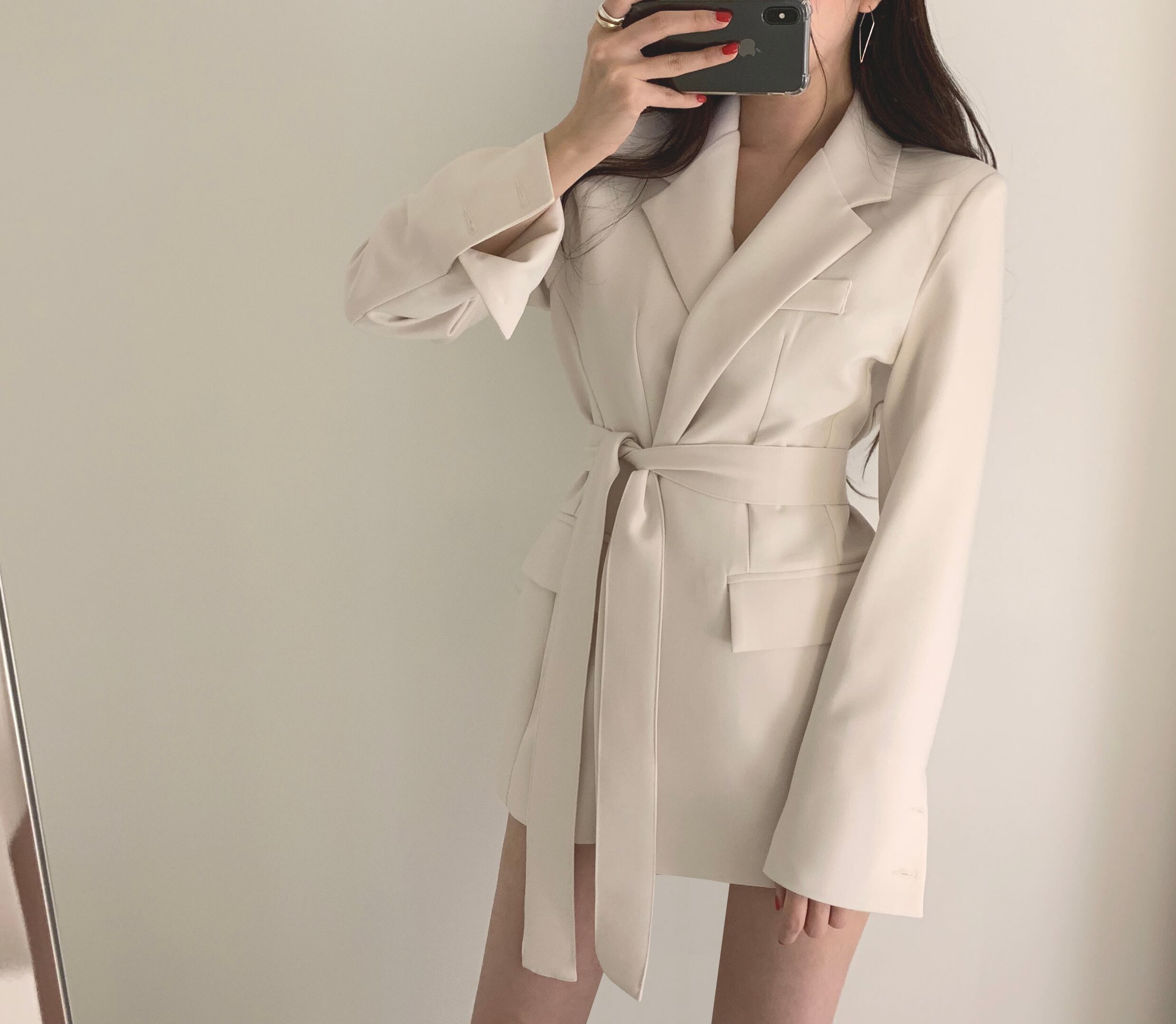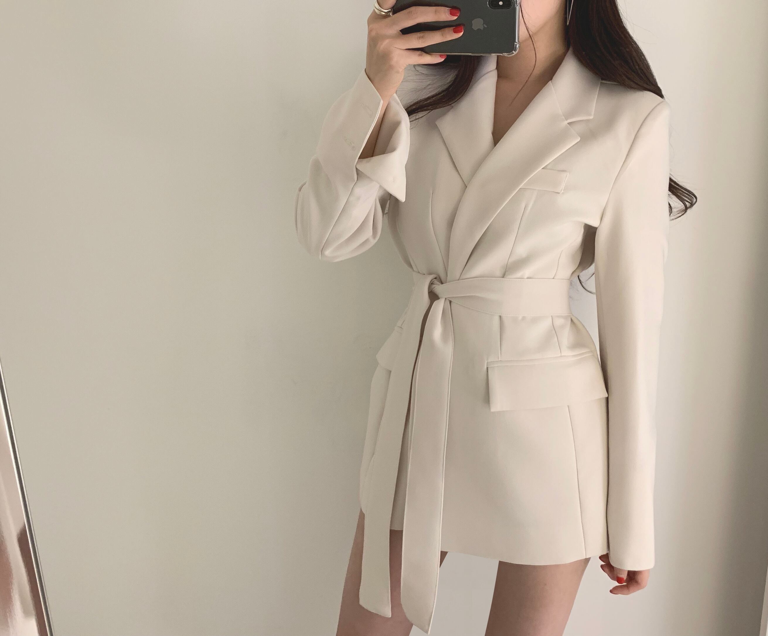 ホワイトスプリングオータムスタンダードウェスト薄手カジュアルジャケット レトロ 春物 秋物 ハーネス ベルト 韓国婦人70249394189