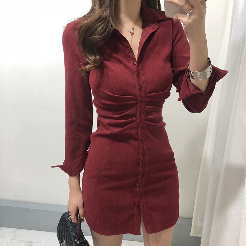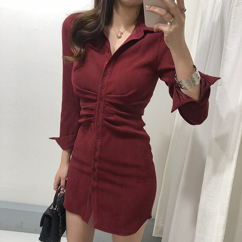 スタイルスタンダードシャツ レッドドレス スプリングオータムウェスト薄手 レトロ 春物 秋物 韓国婦人94214194913
