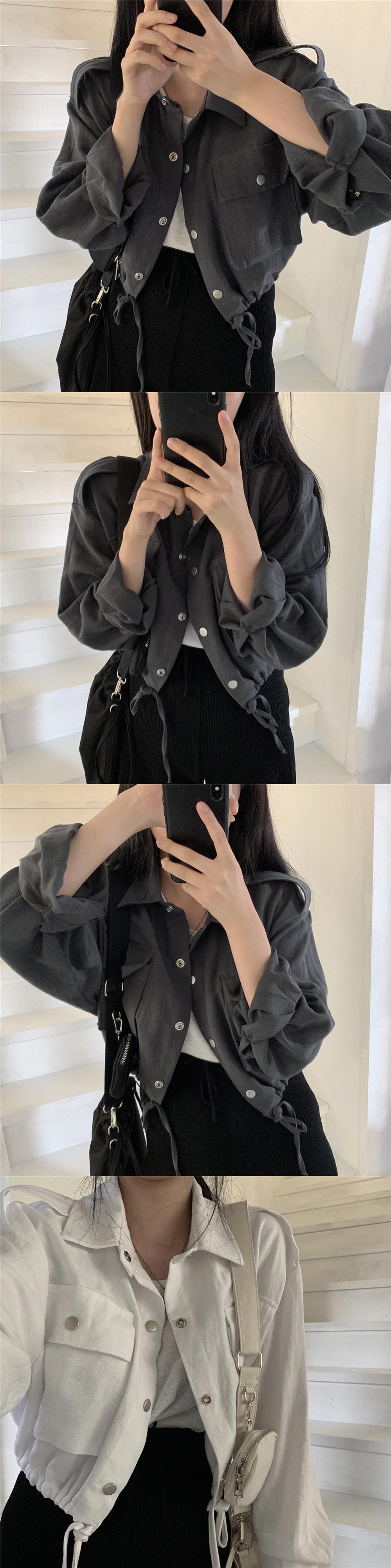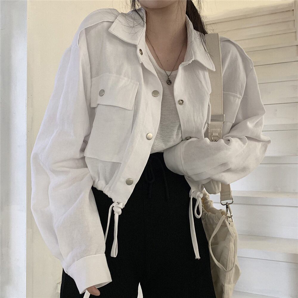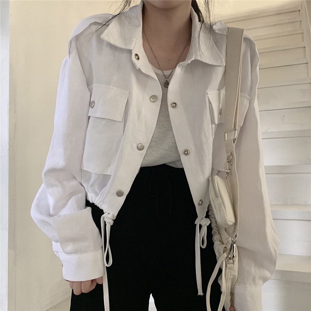 スタンダードルーズギャザーウェストショートコート ジャケット レディース ロング レトロ ポケット多め マルチポケット 韓国婦人1000246544