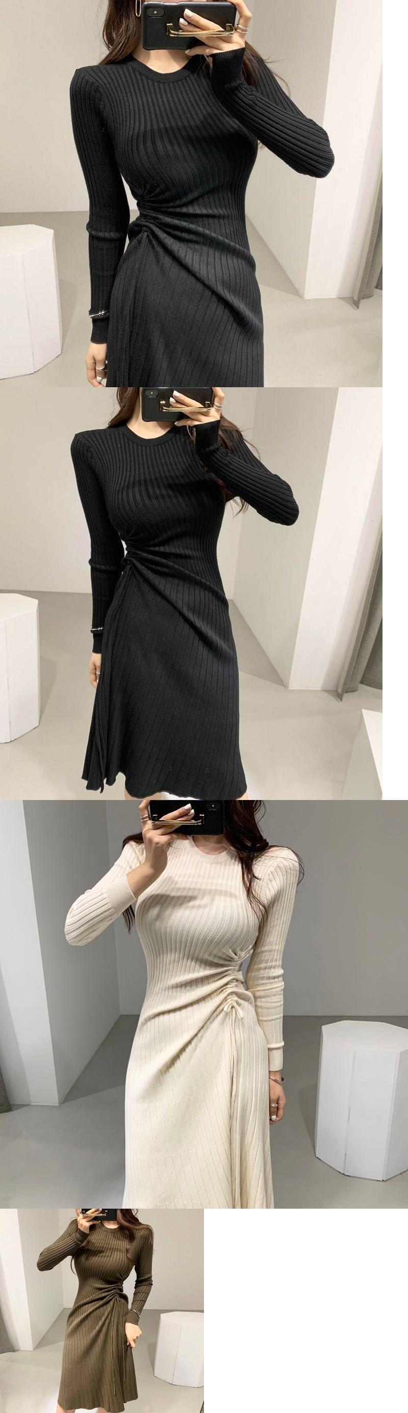 ニットドレス スプリングスタンダードスリムギャザーレースセーター スカート レディース レトロ 春物 韓国婦人98670328737