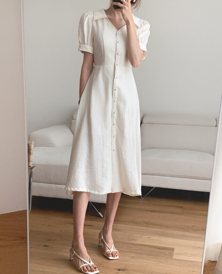 サマースタイルスリーブカジュアルドレス ロング 夏物 韓国婦人90812148454