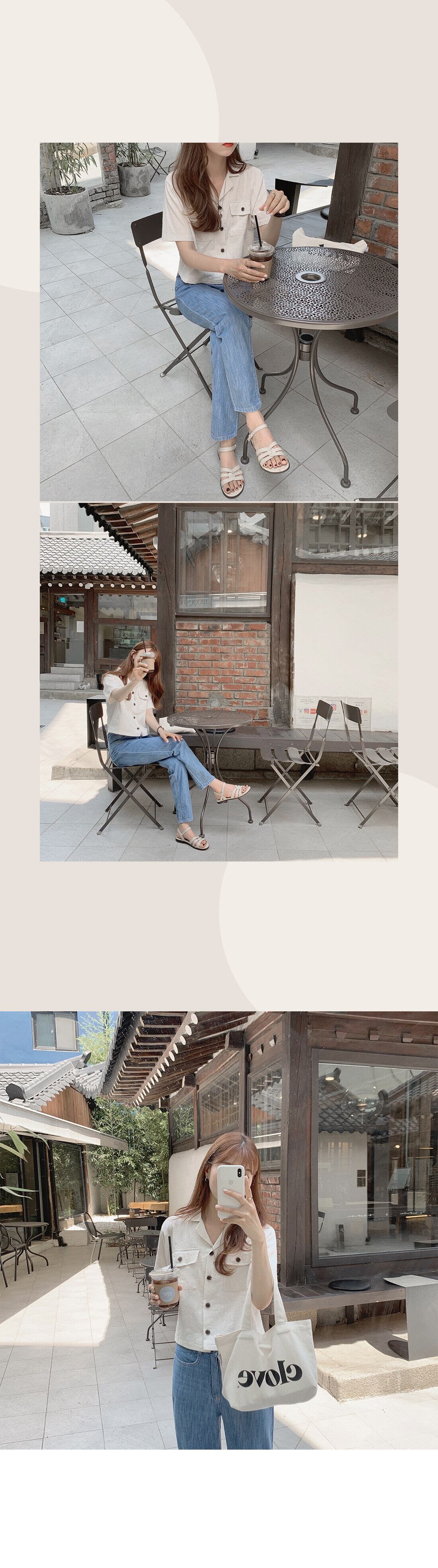 サマースタンダードVネックシャツ ダブルポケット薄手ショートルーズレディース コットン レトロ 半袖 ハーフスリーブ 夏物 韓国婦人15830544416