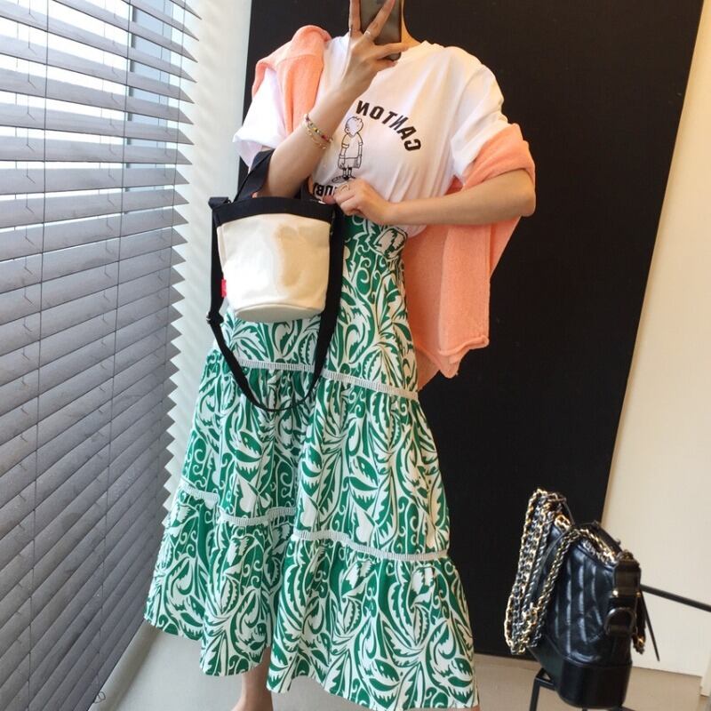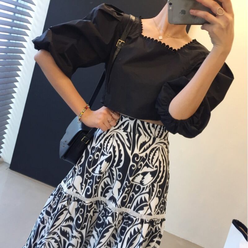 スタンダードスリーブトップス 薄手フローラルスカート レトロ 花柄 スクウェア 韓国婦人22069753428